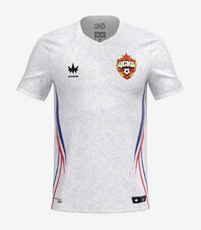 Гостевая форма ПФК ЦСКА на сезон 25/26. Дизайн отсылает к текстуре трофея Кубка УЕФА, который армейцы выигрывали в 2005 году.